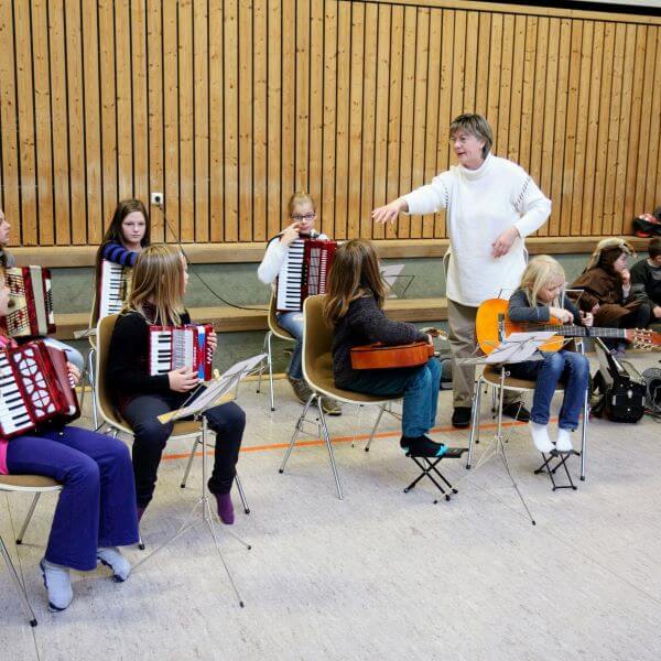 Mit E-Gitarre, Gitarren, Ukulelen, Keyboards, Melodicas, Akkordeons, Mundharmonikas und Vielem mehr wird der Boden zum Schwingen gebracht. Aber auch die sanften Töne kommen nicht zu kurz, bis hin zu klassischer Musik.